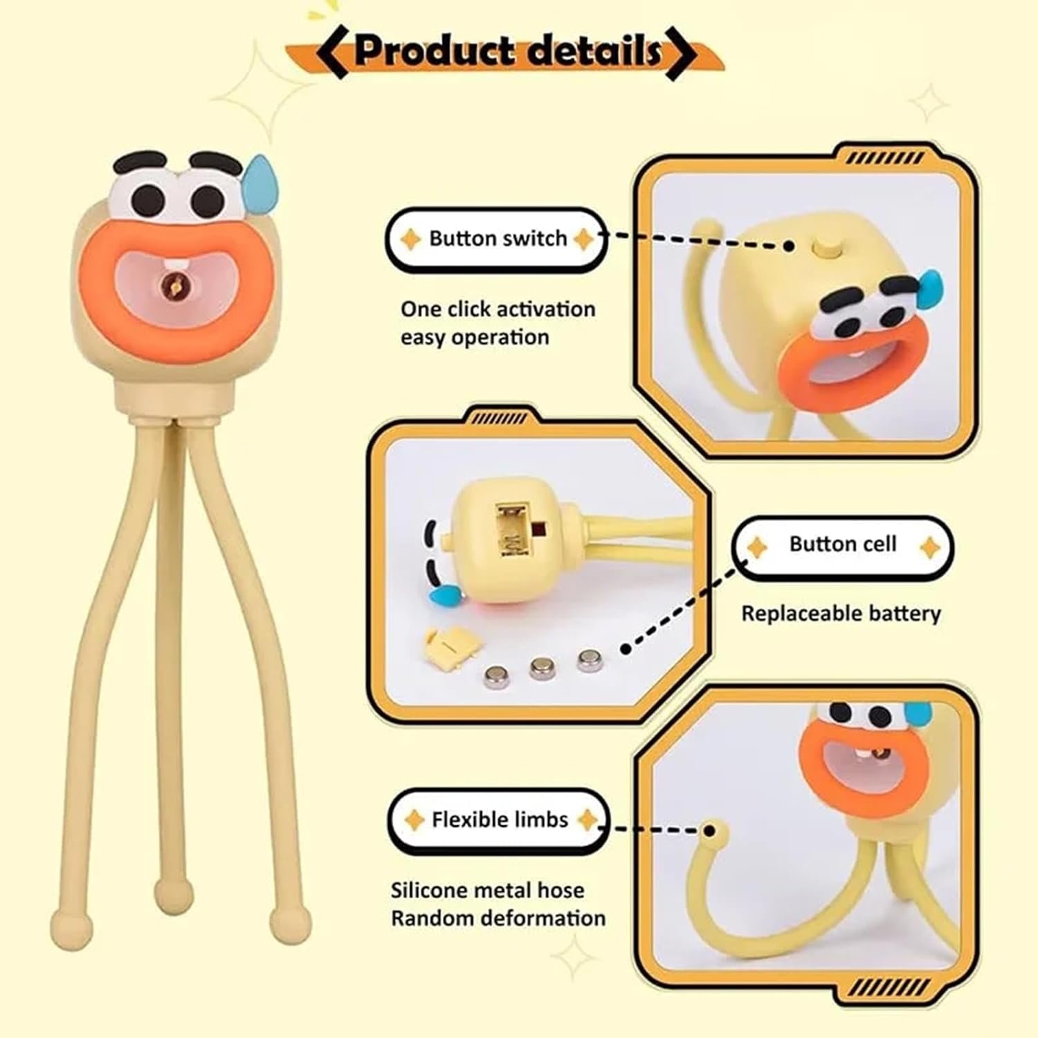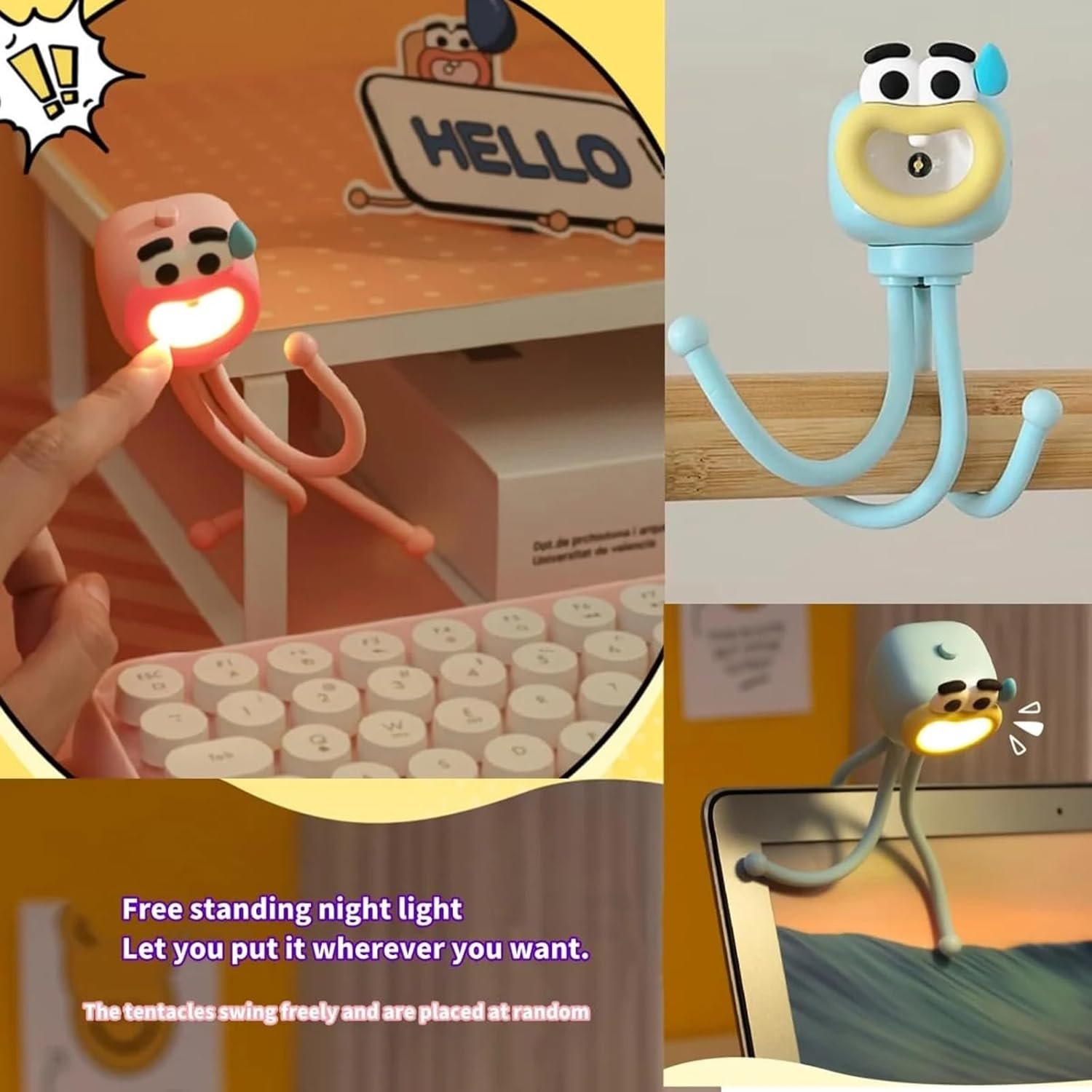 - The cartoon octopus bedside light features three bendable legs for versatile positioning.