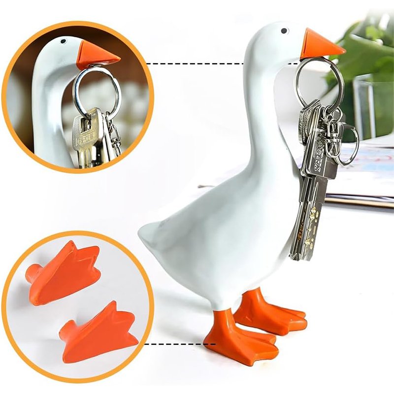 Charming goose-shaped key holder made from hand-painted, durable resin with a flat-bottom for stability — neatly organizes keys while doubling as whimsical décor for entryways, desks, or countertops. A practical, stylish gift perfect for housewarmings and décor lovers.